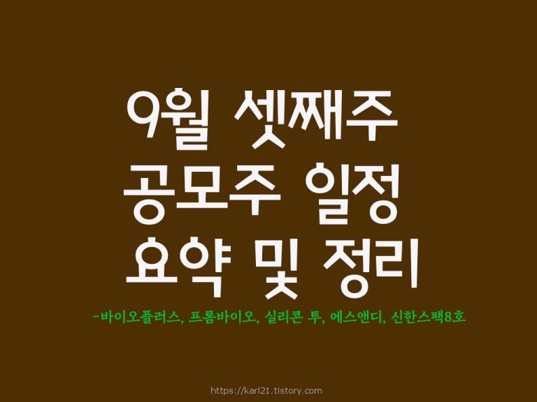추석 전, 9월 셋째주 공모주 일정/요약 및 정리/바이오플러스, 신한스팩8호, 실리콘 투, 프롬 바이오, 에스앤디
