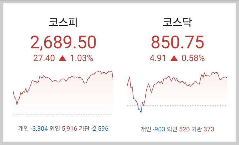 주식시황 :: 삼성전자, 2차전지 상승 (20204/06/05) 1. 코스피 – 2689.50 (+1.03%) – 개인 -3304억, 외국인 +5916억, 기관 -2596억 2. 코스닥 – 850.75 (+0.58%) – 개인 -903억, 외국인 +520억, 기관 +373억 석유시추 관련 액트지오 비토르 방한 인텔, 한국 기업과 협력 SK텔레콤 배당금 늘릴 가능성 올해 1분기 경제 성장률 1.3% 금일 ISSUE https://n.news.naver.com/mnews/article/014/0005195715 미국증시는 4월JOLTs 구인건수가 예상보다...