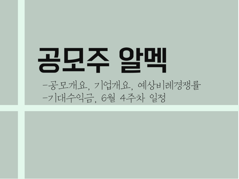 공모주 알멕 공모개요, 기업개요, 예상비례경쟁률, 기대수익금, 6월 4주차 일정
